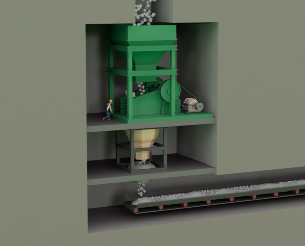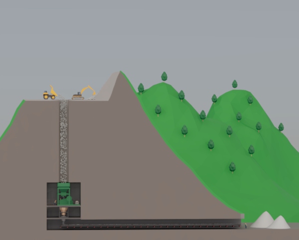 石灰石を粉砕する破砕機、破砕された石灰石を運ぶベルトコンベアの設計、据付などの総合エンジニリングを行っています。