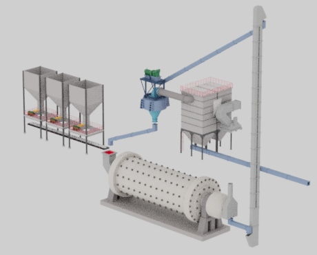 粉砕された石灰石は工場でその他の材料と混ぜ合わせ、さらに細かく砕かれます。