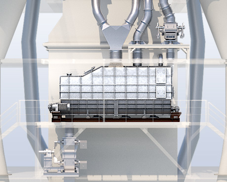 焼成工程で作られた「クリンカ」を粉砕機で細かく砕き粉にし、分級機でふるいにかけ、冷却設備「セメントクーラ」で一気に冷却します。