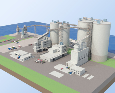 製品供給所(サービスステーション)ではセメントを貯蔵するサイロの設計・据付、