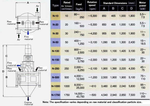 CLASSIEL® can easily control wide classification range (3-200μm) by