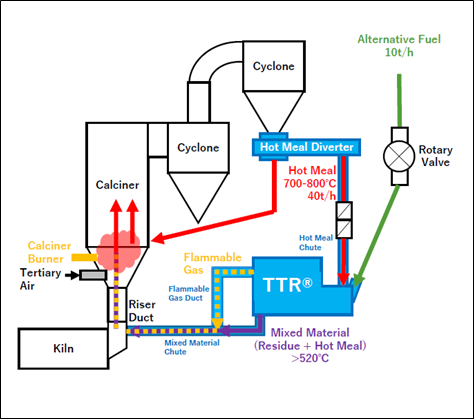 For the efficient utilization of alternative fuel, Taiheiyo Engineering Corporation has developed a state of the art technology using the preheated raw meal.