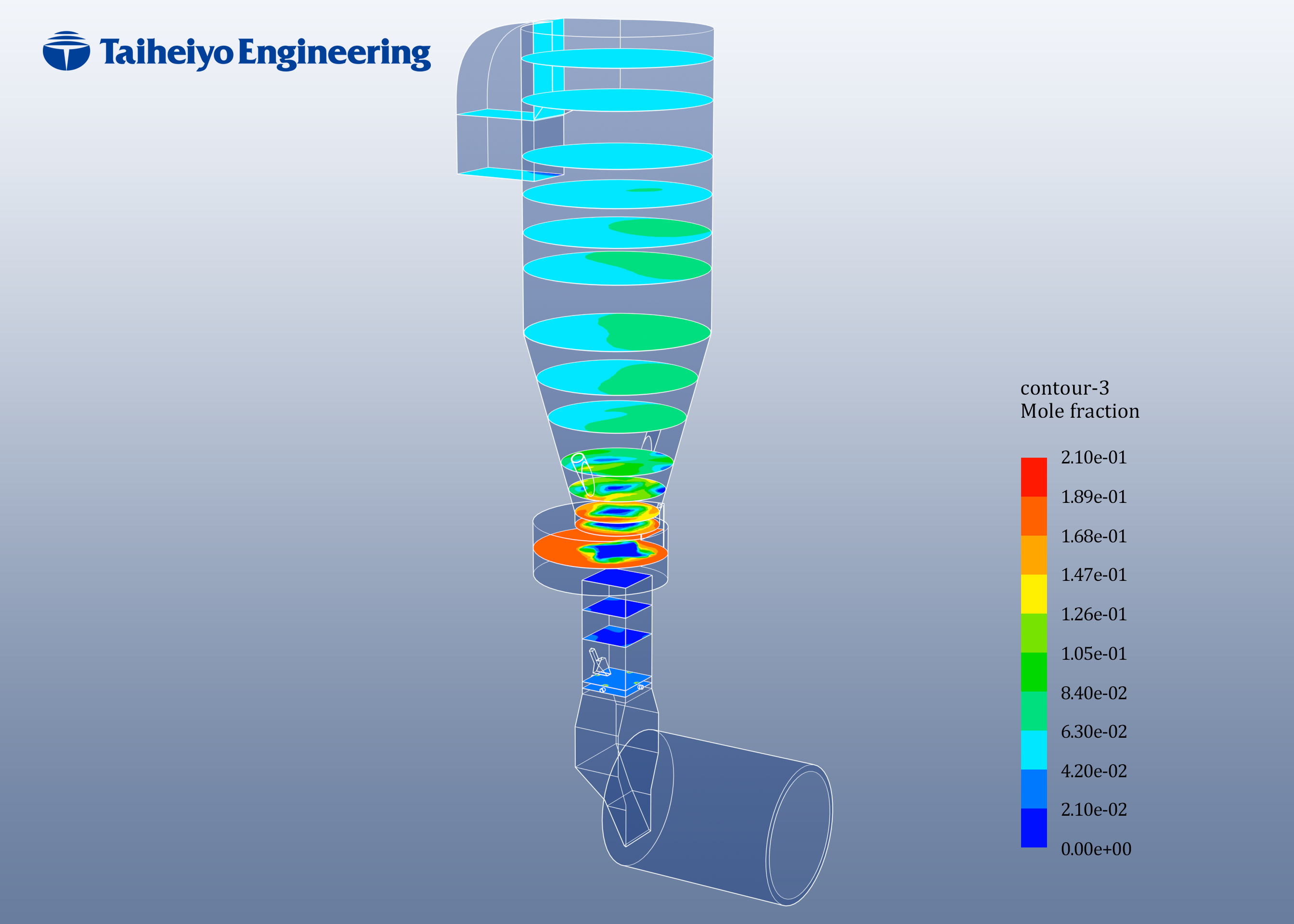De-NOxバーナによる燃焼熱の影響でライジングダクトの温度が上昇し、ダクト内にコーティングが付着し易くなります。そのため、TCSを設置して上段サイクロンの低温原料を分取し、窯尻に送入することでライジングダクトの温度を低下させてコーティングの付着を抑制します。